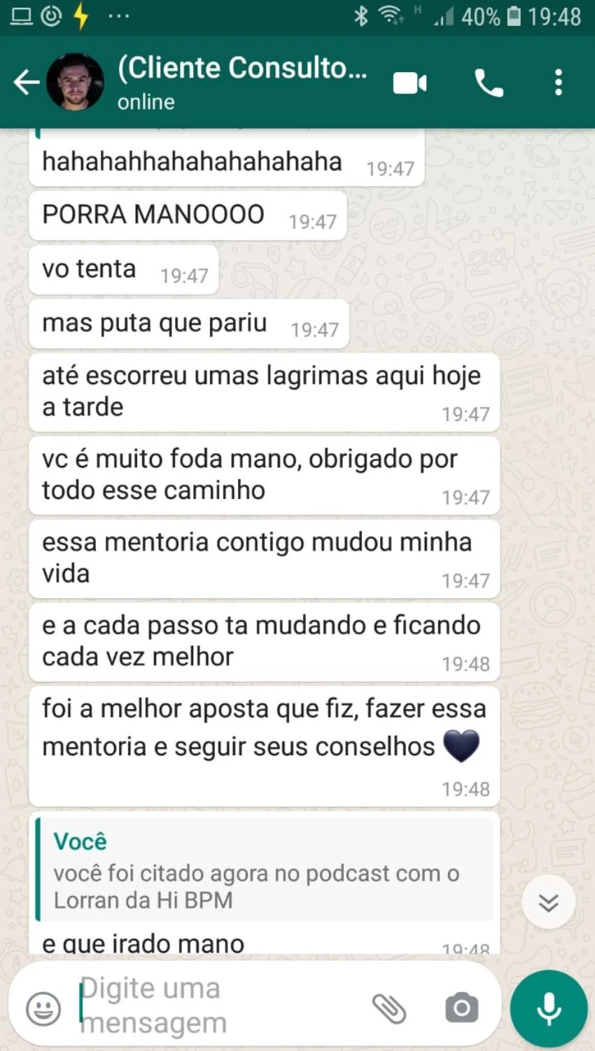 Tenha acesso direto ao Diogo via WhatsApp para tirar dúvidas, ajustar estratégias e receber orientações em tempo real – e assim nunca ficar travado na hora de implementar!