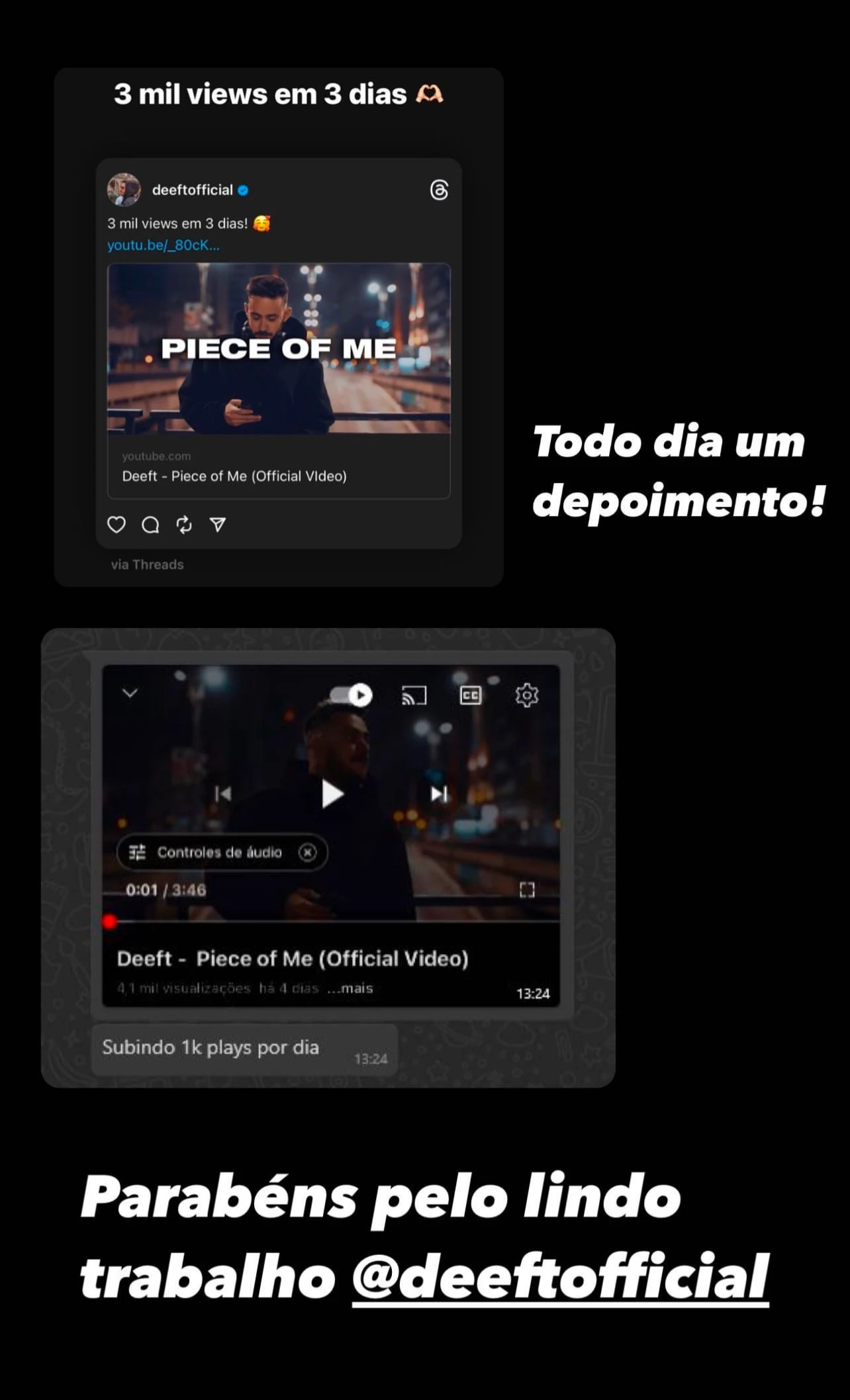 Direto de Porto – Portugal, lançou sua música por uma gravadora pequena e investiu só R$500 em sua música. Com as estratégias aplicadas já conseguiu mais de 180.000 plays e já é o maior lançamento de sua carreira